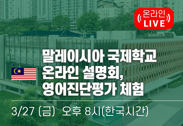 3월 27일 (금) 저녁 8시 (한국시간): 말레이시아 국제학교 종합설명회